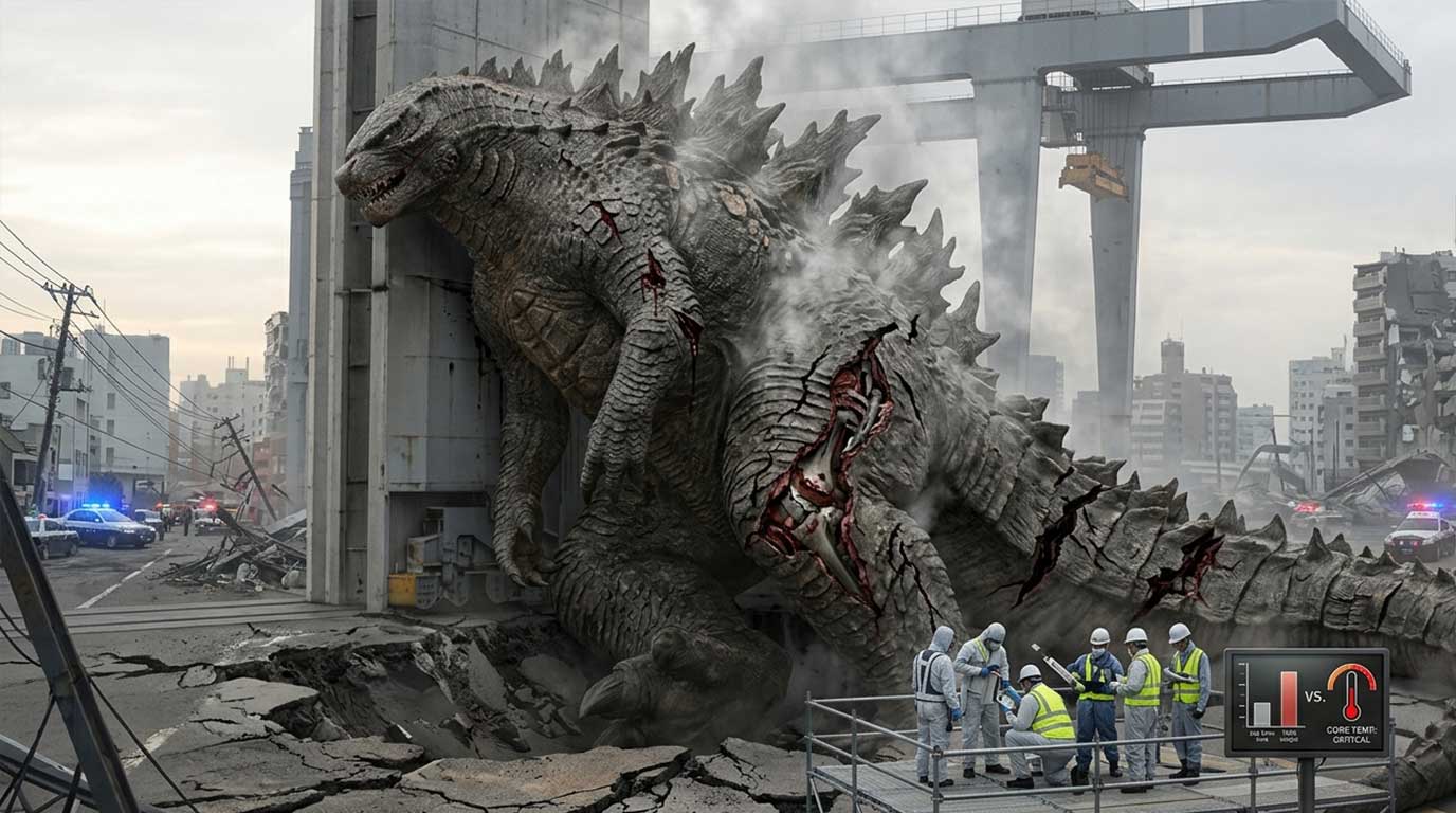 - Эффект духовки: Годзилла с его колоссальной массой и внутренним «атомным реактором» варился бы заживо. Его внутренняя температура достигла бы критических отметок за считанные минуты, так как кожа не смогла бы эффективно рассеивать такое количество энергии. В реальности он бы просто взорвался от теплового расширения газов и жидкостей внутри.